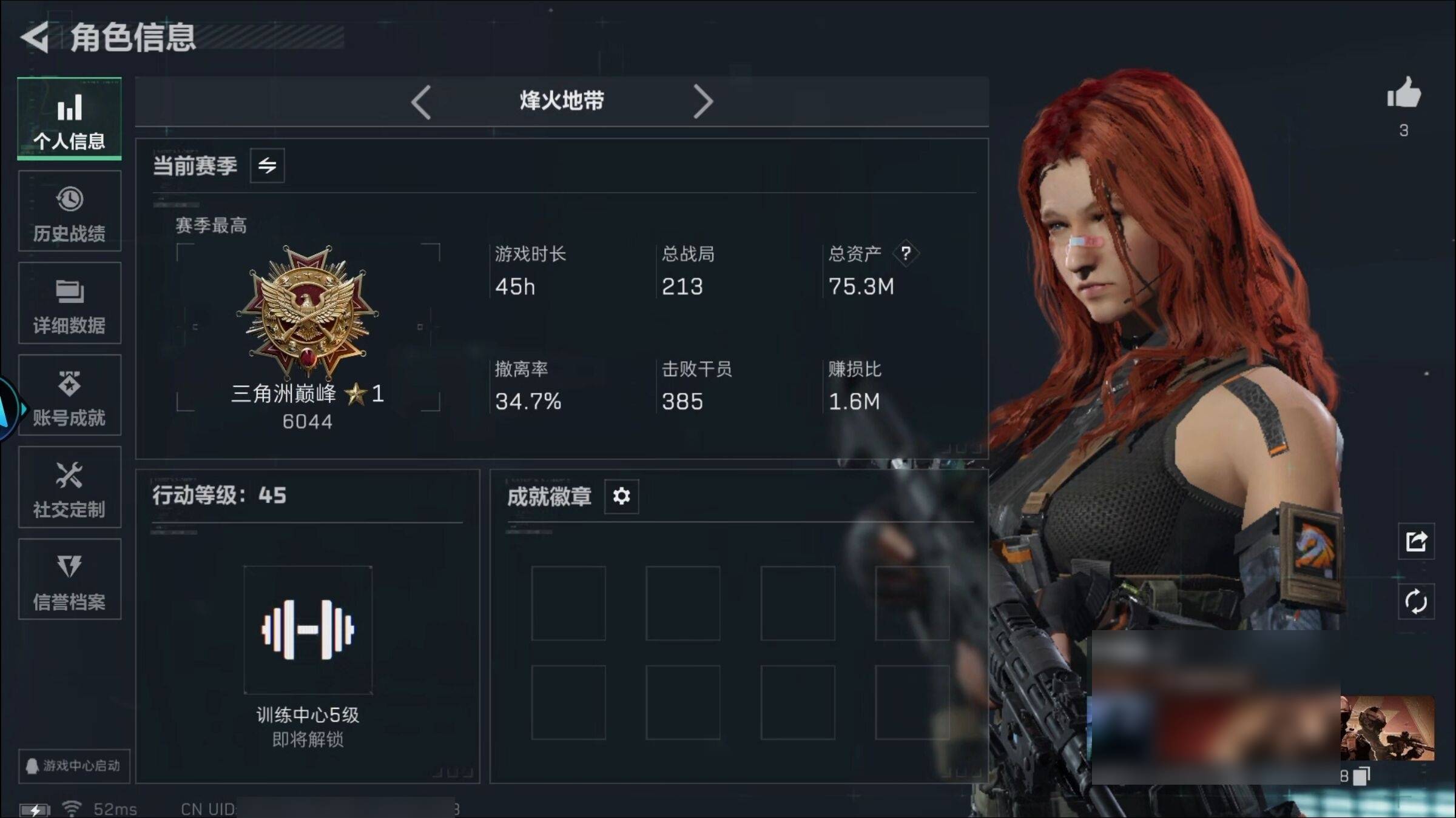 总资产253.3M 4干员外观 19传说枪械 烽火:钻石 战场:统帅...¥1521.00
